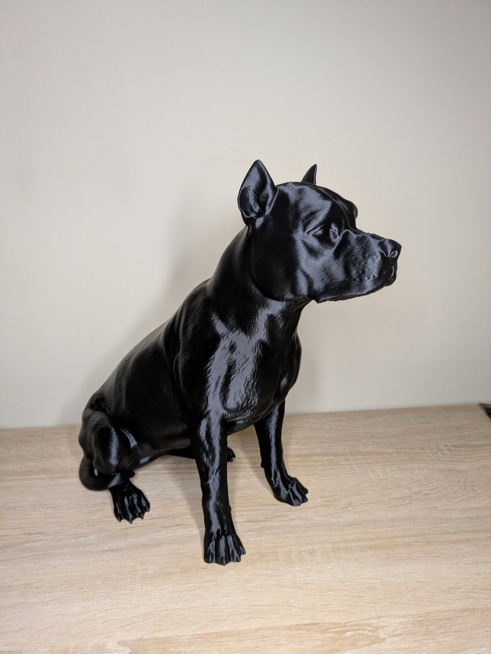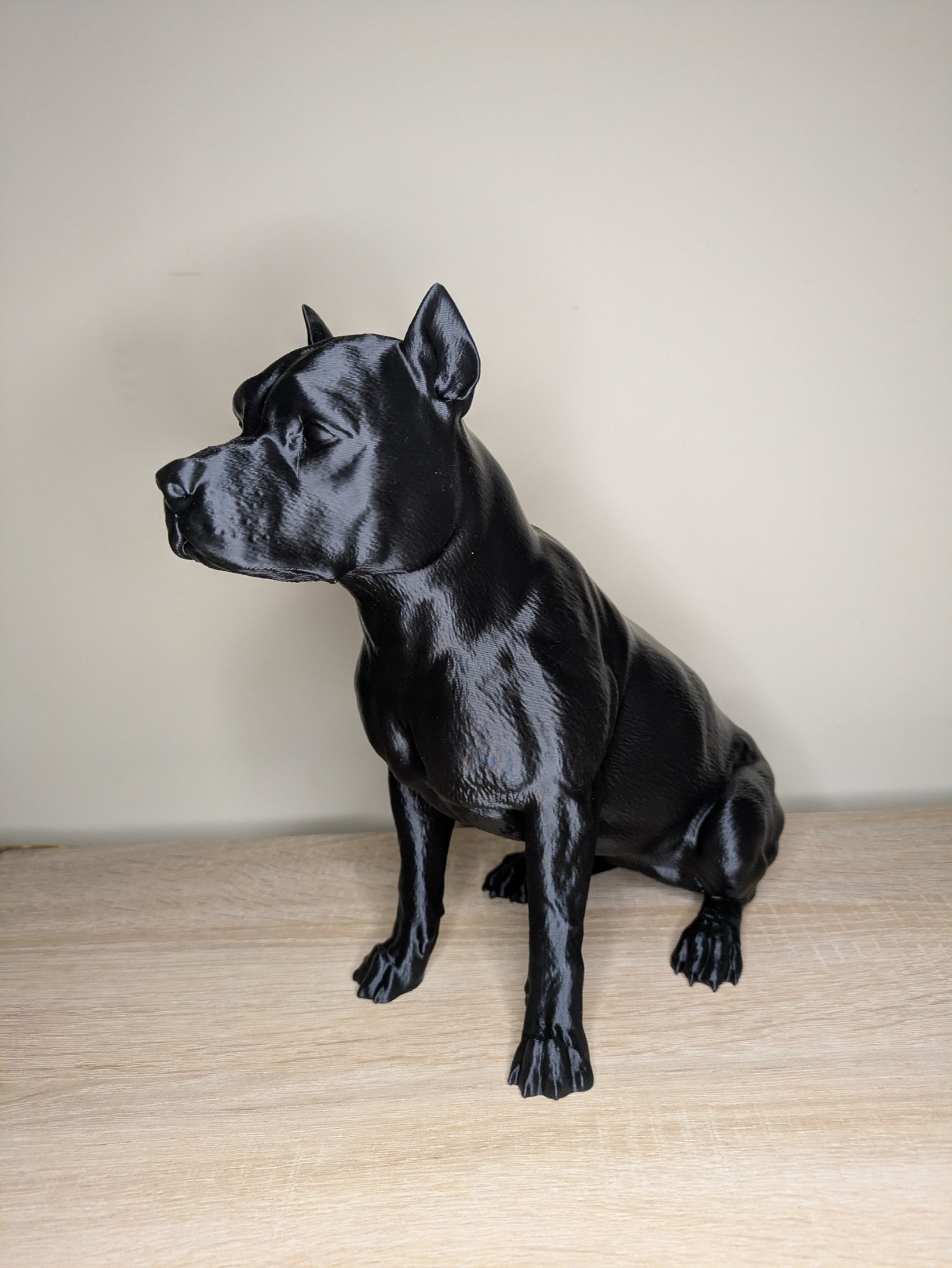Figurka amstaffa została stworzona przy użyciu nowoczesnej technologii 3D, która gwarantuje niezwykłą precyzję i perfekcję każdego detalu. Od wyrazistych rysów twarzy psa po subtelne tekstury jego sylwetki, każdy element został zaprojektowany z myślą o perfekcji. Materiał użyty w produkcji, biodegradowalne tworzywo sztuczne, łączy trwałość z troską o środowisko.